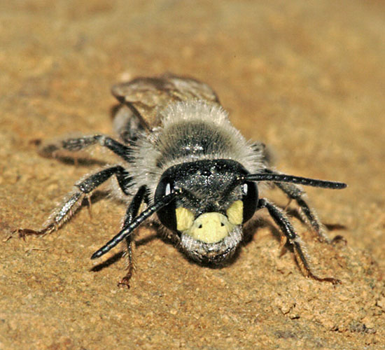 Woodland, hedgerows and nearby grassland which are species-rich in flora are excellent for bees of all kinds and only a fraction of what is a truly massive tally is discussed here. Other pollen-collecting bees are found on the Bluebells page and in particular in the Gardens section of the website, since so many of them offer excellent opportunities for study when they visit borders for nectar or pollen and when they nest. Megachile spp are a case in point. The Nomada genus of cuckoo bees is on a separate page. Bumblebees are easily found and pretty numerous, including Bombus pascuorum (Common Carder Bee, 18mm), a long-tongued species with nests containing around 100 workers. Mating, as with a number of hymenoptera, can involve two males trying their luck with a female simultaneously. The pictured trio on this page took off after a short while, powered solely by the female, and landed still together 20 metres from the starting point - confirmation of the strength of the queen. Mining bees do not pollinate fruit trees to the same extent as bumblebees but the pictured Andrena haemorrhoa (11mm) is at work on a 'wild' apple's blossom. Andrena haemorrhoa is reasonably common and can be seen from April to June. Like all the members of the sizeable Andrena genus, also known as sand bees, she A number of Andrena species are shown in the Sandpits pages of the Heathland section of my website but there are plenty to go around. One of the earlier ones to appear, usually in April, is Andrena labiata (10mm), which is nationally scarce. They are found in grassland up to July and collect pollen from Speedwells (Veronica spp), though they also consistently visit Star of Bethlehem flowers in gardens.The male is one of only a handful of Andrena bees with a white clypeus. Another of the 16 Andrena species that are double-brooded is much commoner. The pictured Andrena dorsata (9mm) is freshly emerged, with the usual brightness of coat at that stage. They are found in various habitats, in scrubby areas or woodland edge. The same applies to Andrena synadelpha (10mm), very much a species of southern England and seen from March to June. In any prize for the most striking Andrena species, Andrena fulva, shown in the Garden section of the website, and Andrena cineraria must be the top two contenders. The former is a dashing mixture of red, orange and black but Andrena cineraria (12mm) matches that with its smoky wings, jet black hue and stunning grey/white edging. Andrena cineraria overwinter as adults in the burrow and are seen on the wing mostly in April and May. They are not too particular about habitat and have no special plant used for collecting pollen but despite this they are not exactly common, for all that they are widespread. In Surrey, for instance, there are few records of them in the southern half of the county. The pictured female was nesting on the Greensand Ridge. Wherever Andrena cineraria is found, especially in the noted aggregation at Ham Common in south-west London, the cleptoparasite Nomada lathburiana can be looked for. Shown on the Cuckoo Bees page, it is a Red Data Book species. Andrena labialis (13mm) is one of the largest Andrena bees and flies from May to July. The male is distinctive, Andrena labialis has a scarce cleptoparasite, Sphecodes rubicundus. This species is exceptional among the Sphecodes group in using an Andrena species as host; the majority use Lasioglossum or Halictus bees. Even more closely linked with Fabaceae is one of the most impressive bees in Britain, Eucera longicornis (12mm), whose Latin and English (Long-horned Bee) names give the game away regarding the prodigious antennae of the male. The reasons for this length are unknown. The female has shorter antennae and also lacks the yellow face. Eucera longicornis is scarce and was made a Biodiversity Action Plan priority species in 2007. They are seen from May to July in various locations including coastal grassland (the Isle of Wight is good) and heathland as well as open woodland rides. They use only the Pea family for pollen collecting. An exceptionally rare bee, Nomada sexfasciata, cleptoparasites Eucera longicornis, being found only in one site in Devon. Members of the Megachilinae brigade which do not cut leaves are Osmia rufa and Anthidium manicatum, which are shown on the Garden Bees and Insect Boxes pages, and Chelostoma florisomne (12mm). The last-named is associated with woodland margins and meadows containing Buttercups (Ranunculae spp), on which it is uniquely dependent for pollen (oligolectic). Perhaps surprisingly, few bees use these widespread and bountiful plants. Chelostoma florisomne nests in old beetle burrows in dead wood. The pictured female was collecting sand, moistened with saliva, to make plugs for separating cells within the nest. Dry sand would seem a tough medium to use for this, and there were no buttercups to speak of in the vicinity, so the choice of the site for soil collection - this happened in 2006 and 2007 - seems a little odd. Halictus rubicundus (11mm), one of only two commonly-found Halictus species, The 12-strong Hylaeus genus, a group of solitary bees which are small and tend to nest in plant stems or dead wood, are very attractive and many are commonly seen. They are around from May to September and have no hairs for carrying pollen, which is carried with the nectar in the crop, or in one species, Hylaeus cornutus, on the clypeus. The cells are made in a line and are waterproofed by a cellophane-like material. The egg is laid on a semi-liquid food store of pollen and nectar. The females forage from a range of plants for their pollen sources. Males, as in the Hylaeus signatus shown in the Downland pages, can have decidedly bright faces but the females tend to be less striking. Some are rare, including Hylaeus gibbus, on the Heathland pages and some are decidedly small. Hylaeus pictipes (6mm) is one of the tiniest and designated as nationally scarce, yet it was found at two ne