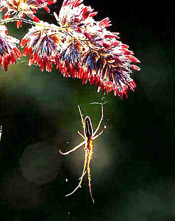 The episode focusing on Arachnidae (spiders) in Life in the Undergrowth on BBC was one of the best in the series and with luck it might have persuaded a few people that these invertebrates are to be admired rather than feared. A boss in industry would surely relish an employee with the qualities spiders show - they are determined, effective, decisive, productive and not wasteful. Spiders in woodland and hedgerow would provide a lifetime's study, so those The Orb-web spider Tetragnatha extensa (body 12mm), from the Tetragnathidae family, builds an inclined web with few radii and spirals in damp places. Marpissa muscosa (10mm), from the Salticidae family, is a nationally scarce jumping spider, larger than most of that group and found under bark or in crevices in trees or fence posts. A female is shown in the Gardens section of the website. Pisaura mirabilis (15mm) is a sizeable member of the Pisauridae family and commonly called a wolf spider, using speed and mobility on the ground rather than a web to chase and catch prey. They bask in sunshine regularly. Uniquely, males present a courtship gift to females, who carry eggs in a sac underneath until they hatch. As the picture above shows, this is quite a commitment, but the females can move almost as fast with the encumbrance as without, and the fact that spiders do not need to hunt every day helps. This behaviour is also shown with a Pardosa lugubris female (6mm), from the Lycosidae family. After hatching, the spiderlings are carried on the back. There are getting on for 20 Pardosa species in the UK, a number of which are hard to tell apart. The Agelenidae/Hahniidae family is small and there only two of the Agelenidae Misumena vatia (10mm) is probably the best known and most often seen member of the Thomisidae family, the so-called Crab Spiders. Females habitually skulk on plants, mostly white like Ox-eye Daisy (Leucanthemum vulgare) but also yellow or green, awaiting prey. They can change colour to match the plant in as little as two days - the second image shows the yellow form - and are capable of using their pincer-like front legs to catch and eat large Hymenoptera such as bumblebees. On occasions, though, as in the third picture of the species above stalking a male Osmia rufa, they lack the size to complete the circle in the pincer movement and fail. The bee showed no sign of concern after the failed attack and carried on nectaring on the plant. The Cross or Garden Spider (Araneus diadematus, 12mm) is the most often seen member of the Araneidae family, with its often perfectly circular and beautifully constructed webs seeming to fill almost any habitat when you walk towards the sun on a dewy morning. The webs can be 40cm in diameter and are found at up to 2.5 metres Harvestmen are related to spiders and with around 3,500 species worldwide are hardly a small group. Most in the UK are easily distinguished by having long legs as well as the standard design of a single body unit with a turret (ocularium) above this for the eyes. They lack poison, or silk to construct a trap, but are fast and capable of catching small prey. Equally, they scavenge on almost anything, including bird droppings and even, according to Dick Jones in his excellent out-of-print book on spiders published by Country Life, marmalade. Harvestmen are prone to infestation by mites, as the image shows. Certain woodland and hedgerow spiders can fall prey to one of the minority of spider-hunting wasps found in this environment more often than heathland, namely Priocnemis perturbator (14mm). This species is one of a handful, all of them relatively large and also including Priocnemis susterai and Anoplius viaticus, which overwinter as adults and appear in the spring. Priocnemis perturbator, which is reasonably common and has long antennae, can often be seen nectaring on Wood Spurge (Euphorbia amygladoides). Priocnemis perturbator follows the method of the majority of spider-hunting wasps in hunting out prey, which is paralysed then transported to a burrow where the spider has an egg laid on the abdomen and is interred to provide sustenance for the resulting larva. Arachnospila spissa (to 12mm), which also inhabits mainly vegetated areas, is one of the largest spider-hunting wasps. Not too difficult to find on the margins of woodland, they have a different approach to the same end of finding food for their offspring, attacking prey in the nest and leaving it there paralysed. Images © Jeremy Early. All rights reserved. In 2013 I published My Side of the Fence - the Natural History of a Surrey Garden. Details may be found, and orders placed, via this hyperlink My Side of the Fence. In November 2015 Surrey Wildlife Trust published the atlas Soldierflies, their allies and Conopidae of Surrey, jointly written by David Baldock and me. Details are on this web page: Atlas. |
