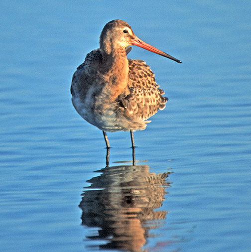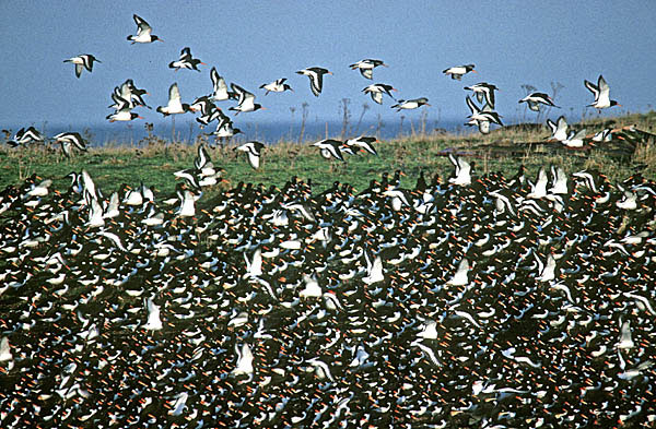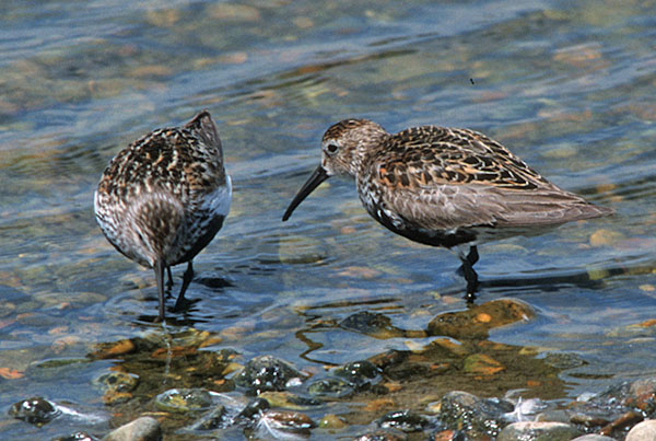 Coastal regions provide a magnificent habitat for thousands of birds, not just wildfowl and waders, though those totally dominate proceedings numerically. Unlike farmland and even woodland birds, coastal birds increased by 37 per cent from 1970 to 2003, though some species on The Wash have not done so well Among the waders, the Avocet (Recurvirostra avosetta, wingspan 80cm), whichfeeds mainly on aquatic invertebrates caught by sweeping the curved 8cm bill from side to side, is one of the great success stories in British conservation. After becoming extinct due to hunting, egg collection and drainage schemes in the 19th century (especially reclamation of saltmarshes), the Avocet became the symbol of the Royal Society for the Protection of Birds and started recolonising East Anglia in 1938. Helped by sensitive management of such sites as Havergate Marshes and Minsmere, they are now breeding in virtually all their old area in the south-east with more than 500 pairs. The nest is always close to water. Many spend the winter in the west country, others go south in Europe. Rising sea levels are likely to make some of the breeding areas unusable, but by the same token additional ones will almost certainly appear. Ringed Plovers (Charadrius hiaticula, wingspan 50cm) are fairly common ground nesters, having increased by 20 per cent from 1970 to 1985, partly because with better management of coastal sites they can have up to three broods in favourable years. Their celebrated efforts to draw potential predators away from eggs and/or young include feigning injury or making fast, low zig-zag flights. Unlike the related Little Ringed Plover, the Ringed Plover is essentially coastal. The southern England breeding birds tend to spend the winter here while those from further north across Europe migrate. Some Oystercatchers (Haematopus ostralegus, wingspan 85cm) breed in southern England but most go further north - there is no comparison between the numbers present from April to September and those on the premises through the rest of the year. Even when thousands take off, they fly in a much more direct and level manner than most waders. Their food is mainly bivalve molluscs, which they either hammer on a hard The Dunlin (Calidris alpina, wingspan 40cm) is a bird of medium conservation concern which nests mostly further north in Europe though up to 30,000 pairs can be found here in the breeding season. As the picture shows, their plumage at this time of year is delightful. In winter Dunlin form huge flocks, with more than half a million arriving, and when taking off in bulk they can produce spectacular aerobatic displays. Turnstones (Arenaria interpres, wingspan 50cm), which live up to their name when searching for food consisting of molluscs, crustaceans and insects, nest in Fenno-Scandia but winter in large numbers in the UK. As a rule they are readily approached. Knot (Calidris calutus, wingspan 60cm) breed in the far north, including the Arctic, but winter to the south with the best part of 250,000 coming to Britain each year in the 1980s. The Wash, notably Snettisham Pits (RSPB), is among the best places to Grey plover (Pluvialis squatarola, wingspan 75cm) breed in northern Russia but up to 10,000 winter in the UK, with more passing through on the way south - numbers peak in August-September. Black-tailed Godwits (Limosa limosa, wingspan 75cm) breed in significant numbers in the Netherlands, anything up to 100,000 pairs though declining. In Britain they average about 50 pairs each year, often in the Ouse Washes, where the tendency for summer floods can cuase major failures. In contrast, the Bar-tailed Godwit (Limosa lapponica) breeds in the far north of Europe but is commoner in Asia. Up to 60,000 arrive here to winter. Drainage and collection for food and by naturalists resulted in the Ruff (Philomachus pugnax, wingspan 56cm) all but disappearing from its east coast strongholds in the 19th century. They did not breed in Britain at all from 1922 to 1963, but since then just a One relatively rare visitor, mostly to The Wash in winter, is the Spotted Redshank (Tringa erythropus, wingspan 64cm). This differs from the Redshank not only in numbers but in looks, with the dominant colour grey rather than brown and a longer beak and legs. The species is by no means numerous, with around 30,000 pairs breeding principally in wooded tundra in the far north of Europe. They winter further south, though only a few hundred come to Britain. One even less common visitor is an intriguing member of the sandpiper family, the Red-necked Phalarope (Phalaropus lobatus, wingspan 38cm), which breeds in small numbers, around 25 pairs, in Shetland but is principally a bird of the far north and Fenno-Scandia. With around 40,000 breeding pairs in western Europe, mostly in Iceland, and even larger numbers in Russia, the Red-necked Phalarope is not under any great pressure. However, in Britain it is designated of high conservation concern and must be one of those species which are far from Red-necked Phalaropes and others in the family offer a fascinating example of role reversal in the sexes since the female (pictured) is brighter in colouring, establishes the breeding territory, leads in courtship, and leaves the male to incubate the eggs and tend the fledglings in the early stages. A few Red-necked Phalaropes drop in, usually to eastern coastal counties, in late July or August on their way to wintering either off the West African coast or in the Arabian Sea. They are well worth seeing, and are invariably pretty tame. Images © Jeremy Early. All rights reserved. In 2013 I published My Side of the Fence - the Natural History of a Surrey Garden. Details may be found, and orders placed, via this hyperlink My Side of the Fence. In November 2015 Surrey Wildlife Trust published the atlas Soldierflies, their allies and Conopidae of Surrey, jointly written by David Baldock and me. Details are on this web page: Atlas. |