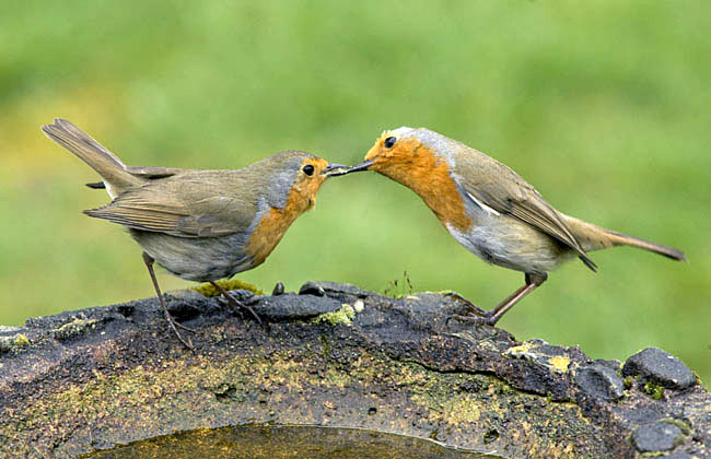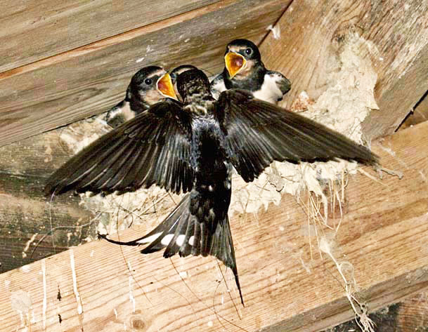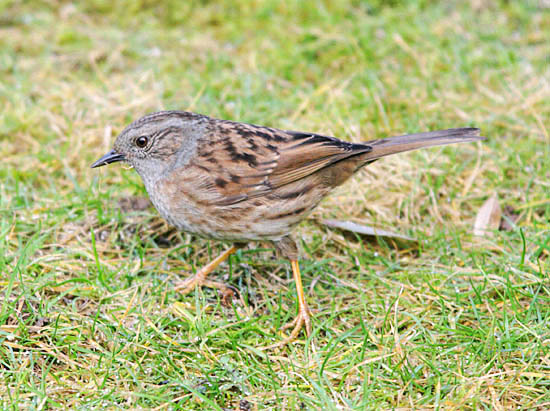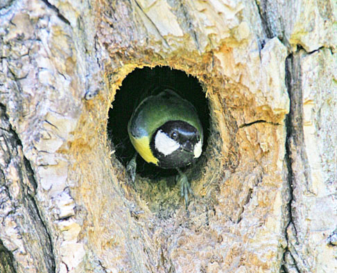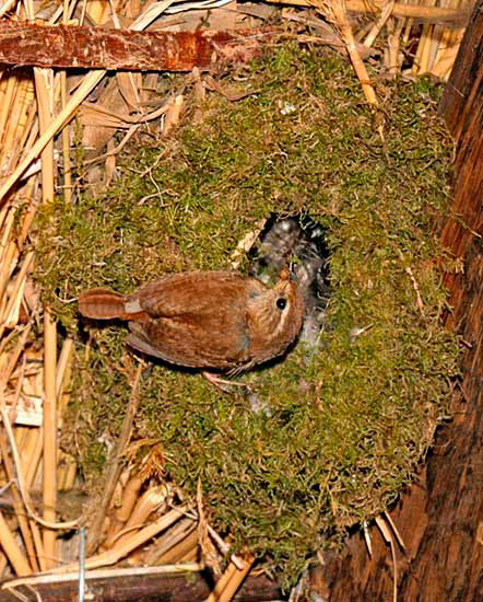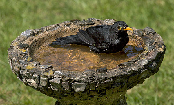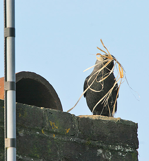 First, a plain truth. There is no such thing as a garden bird. The best gardens and buildings are merely aggregations of different natural-style habitats used casually or systematically for various purposes by the denizens of those habitats. Woodland birds are the main beneficiaries. Perhaps those closest to being specialists are the ones bearing a human connection in their English name, such as the Barn Owl (Tyto alba), the House Sparrow (Passer domesticus, wingspan 23cm) and the House Martin (Delichon urbica, wingspan 28cm). All of those have shown opportunism in appropriating 'our' space for nesting and foraging. The House Martin was originally a rock-nesting species, and they, Barn Owls and House Sparrows are still at home in rocky settings in parts of their range. It's just that Regrettably, House Sparrows, which almost certainly arrived in Britain with Neolithic man, are now a species of high conservation concern after suffering a major decline. The reasons are not entirely clear but one theory blames the virtual disappearance of spare grain in towns, cities and on farms with the replacement of horses by motorised vehicles. The modern tendency to make rural locations with livestock tidier (or less wasteful) than formerly probably hasn't helped either. In fact, old-style livery stables are still a stronghold of House Sparrows and Swallows (Hirundo rustica, wingspan 33cm), with the latter, which have always been more numerous in farm buildings than House Martins, maintaining pretty stable populations through both the 19th and 20th centuries. Their undoubted popularity may have had something to do with this, and with the continuing success of House Martins. Both species are insectivorous, have two broods all being well, and winter in Africa. Houses and outbuildings offer abundant opportunities of vacant and safe space to birds, with Jackdaws (Corvus monedula, wingspan 70cm), typically intelligent members of the Crow family, a prime example. They eat almost anything, are not in the habit of storing food like some other members of the tribe, and are particularly adept at nesting in chimneys, sometimes to the chagrin of property owners. They are also social and noisy, and disputes between neighbouring families can be very loud. On a much smaller scale, Wrens (Troglodytes troglodytes, The Coal Tit (Parus ater, wingspan 19cm) pictured above found a hole in the wall alongside the waste pipe from a bathroom and successfully reared chicks there. The nest was built of sundry natural and man-made materials, and the only drawback was that when the bath water was being let out, the heat made it impossible for the bird to enter the nest for a short while. Great Tits (Parus major, wingspan 23cm) and Blue Tits (Parus caeruleus, wingspan 19cm) also take advantage of holes in walls along with suitable nest-boxes and their more natural habitat, holes in trees. Blue Tits (the pictured one is collecting cat fur for nesting) are the commonest, or most frequently seen, birds in many gardens, which is hardly surprising given the size of the population in Britain: around seven million and increasing. There are fewer Great Tits, around four million, but they too are increasing. Not much more than half the size of the Blue Tit is our smallest native bird, the Goldcrest (Regulus regulus, wingspan 12cm), with its dashing yellow crest (the rarer and related Firecrest, Regulus ignicapillus, is much more orangey). Goldcrests, which eat only invertebrates such as aphids and small spiders, are most often found in conifers but can be seen dashing about almost anywhere in incessant style - the pictured bird was on the lawn. Understandably, many woodland birds, including tits, bring their Despite still having more than two million territories in 2000, the Dunnock (Prunella modularis, wingspan 23cm) underwent a significant decline in the 1970s and 1980s, with the result that it is now a species of medium conservation concern. Given the adaptability of the species, this drop in numbers is a shade surprising, since they make themselves at home in almost any habitat where humans are present and quite a few where they are not. Equally, Dunnocks do not make their presence terribly obvious, preferring to stay under cover most of the time, though they are pretty apparent when singing. Their nests are constructed in bushes, hedges or trees of the type many gardens hold, and their breeding is fascinating, involving various combinations of birds with the same partner, male or female. This can be a female with two males, or a male with two or three females, and so on. Berry-carrying trees and shrubs help the Blackbird (Turdus They have several broods each year and can breed close to human habitations, in virtually any shrub offering good cover - the pictured bird nested in a Jasmine bush right by the front door. Unfortunately a cat killed two of the four youngsters at the nest as they were about to fledge but two, plus the adults, lived to fight another day. Robins (Erithacus rubicula, wingspan 22cm) are nothing like so approachable on the Continent as they are here, remaining based on the margins and in woodland. In Germany, for instance, you would be unlikely to see one perched on a garden fork handle as happens in countless properties in the UK while they wait for invertebrates to be disturbed in the soil. Or perched on a washing line, an activity for which they are not designed, waiting for food to be thrown out of a window. Robins are not designed for seed feeders either but are adapting to hover and feed or perch, albeit none too comfortably. They nest in virtually any location, using natural or artificial holes, even in watering cans. One of the grandest gardens in southern England, Wakehurst Place, hosted a Robin with a lot of white on his/her wings during the winter of 2012-13. The bird is also shown at the top of this page. The white was completely symmetrical and this was probably the outcome not of leucism but of a rela
