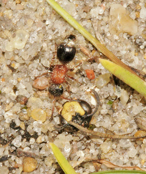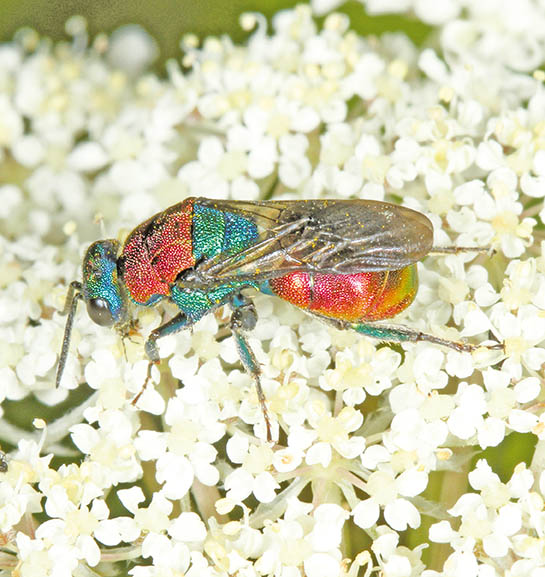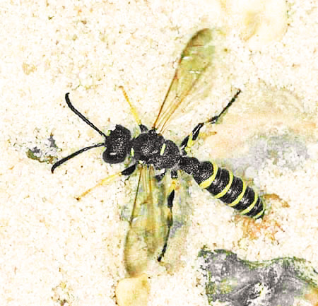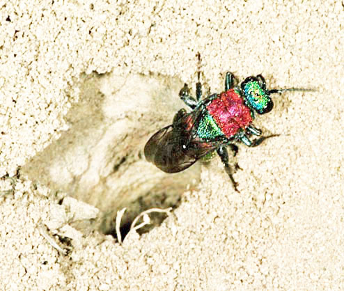 Cerceris arenaria and Cerceris rybyensis are parasitised in particular by Hedychrum nobile (8mm), a cuckoo wasp added to the British list relatively recently. They are now two a penny in many sandy parts of lowland England though that phrase hardly does justice to a species which is one of the most attractive of its kind, with the female showing a mixture of colours and the male just two. For the record, accurate descriptions of the colours are virtually impossible since light refraction turns blue to green and back, and makes red vary significantly too. Hedychrum nobile is one of around 40 British species of Chrysid or ruby-tail wasp, some of whom are cleptoparasites feeding on the food stored in the host's nest and some parasites feeding on larvae. They are heavily armoured for protection and, additionally, the majority can adopt a rolled-up defensive posture when threatened. Males are much less often seen than females. Hedychrum nobile's methods are typical. Bright sunshine is ideal for them, principally in July and August. I watched a female take a quarter of an hour checking out 14 burrows along a fairly small section of sand. On one occasion she met another of her kind exiting and on another she was faced off by a Cerceris arenaria in the nest. Eventually she found a free burrow and set about her work, which took several minutes. One of a different family that parasitises Cerceris species among others (also including spider-hunting wasps and mining bees) is the scarce Smicromyrme rufipes, a tiny wasp (6mm) to be dealing with such a large set of hosts. They are from the Mutillidae or Velvet Ant family, which sees the females wingless and the males able to fly. The female lays her eggs on mature larvae, meaning her progeny eats the host rather than the food provided for it. Much of their time is spent running quickly across the ground seeking likely nest sites to enter. The pictured female was in no danger from the adjacent Cerceris rybyensis head as the latter was detached. Satellite flies (Metopia sp, 6mm), from the Miltogramminae family, tend to follow the wasp back to a nest and then take their chance. Their vulnerability is counteracted by alertness, speed and the application of larviposition, whereby their eggs hatch into maggots as soon as they are deposited. Other flies from the family, including Miltogramma punctata (6mm), parasitise a variety of aculeate hymenoptera, usually solitary bees. However, the pictured fly spent some time lurking near a Cerceris arenaria nest and eventually went into it. Images © Jeremy Early. All rights reserved. In 2013 I published My Side of the Fence - the Natural History of a Surrey Garden. Details may be found, and orders placed, via this hyperlink My Side of the Fence. In November 2015 Surrey Wildlife Trust published the atlas Soldierflies, their allies and Conopidae of Surrey, jointly written by David Baldock and me. Details are on this web page: Atlas. |