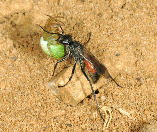 There are more than 40 species of spider-hunting wasp in Britain, including a new colonist from the continent discovered in 2005. The group is pretty easy to separate from other aculeate Hymenoptera in the field owing to their long hind legs, but many are hard to identify as individual species without recourse to a microscope. Their behaviour is uniformly fascinating and while heathland is one of the best locations in which to see them, they occupy virtually all environments from coasts to gardens. One of the best types of habitat is a tree root-plate with light undergrowth nearby As the picture below shows, much of the soil on the front of the root-plate fell off after strong winds and heavy rain in the winter of 2006-7, which did no good to those which had nested there the year before, but there were plenty of new colonists from the same species on show the following summer, indicating the resilience of these aculeates. A few species parasitise other Pompilidae, and a few deal with their spider prey in the latter's webs, but the majority are fossorial, creating burrows in which to store prey or using existing ones made by beetles or other invertebrates. Unlike a number of solitary wasps, they do not kill their prey but paralyse it. A larva gorges itself on the paralysed spider, pupating after a week or ten days then waiting the best part of a year before emerging as an adult. Pompilidae also spend more time on the ground than in flight, only a handful actually flying with their prey, which means their navigational skills sometimes are tested to the limit in traversing the woodland floor or sandy slopes. Generally the prey is too substantial and cumbersome to make flight feasible. Spider-hunting wasps are phenomenal hunters - in the USA one, Pepsis formosa, hunts tarantulas, flicking them on to their backs before stinging them. The only time I have ever seen a spider running from another invertebrate was when Auplopus carbonarius was hunting in Ivy on a rockery - a Lycosid spider apparently detected its presence and high-tailed it out of there. Considering how well equipped spiders are to defend themselves - and to attack - the success of spider-hunting wasps in catching them, including in the nest, is remarkable, though they have the huge advantage of mobility. Their sting is also very powerful, not to be sampled lightly by humans As possible proof of the venom involved, a robber-fly (Machimus atricapillus) caught a small Pompilid (Arachnospila sp) in my view in 2005 and pretty quickly let go of it. It takes something special, or dangerous, to make a robber-fly drop its catch, though for the record, Pompilus cinereus have been known to be taken and eaten. Images © Jeremy Early. All rights reserved. In 2013 I published My Side of the Fence - the Natural History of a Surrey Garden. Details may be found, and orders placed, via this hyperlink My Side of the Fence. In November 2015 Surrey Wildlife Trust published the atlas Soldierflies, their allies and Conopidae of Surrey, jointly written by David Baldock and me. Details are on this web page: Atlas. |