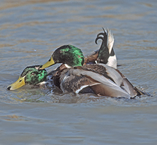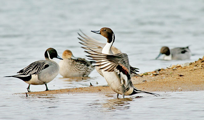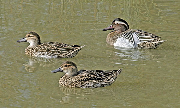 Dabbling ducks are much commoner than diving ducks in Britain, with resident breeders as well as winter visitors. Within the group, Mallards (Anas platyrhyncos, wingspan 90cm) are the most numerous by far in summer, when found along most rivers and even in smaller ponds as well as coastal waters. Because they are so common, the stunning plumage is sometimes taken for granted. Mallards fight savagely in the breeding season and mating can also be violent, more like the behaviour of some invertebrates, with several males often going at a female who exceptionally can be drowned. Clutches can number 17 eggs (average ten), with more than one brood a year. Warmer autumns allow them to breed well into September, though the chicks' chances of survival are reduced. Vast numbers add to the total as migrants in winter. Mandarin Ducks (Aix galericulata, wingspan 70 cm), are smaller than Mallards but make up for relative lack of size by being pretty feisty. They are an exception - the Little Owl (Athene noctua) is another - in being a non-native species which appears to have had no negative effects on native wildlife. Endangered in their far eastern homelands, they were introduced deliberately An increasing number of Gadwall (Anas strepera, wingspan 90cm) nest in Britain and there are more wintering here as well, with any large pond likely to see some together with their marvellously vermiculated plumage. They feed on aquatic vegetation obtained by swimming along with the head under water, though they are also noted for 'mugging' Coots (Fulica atra). There is a record from Germany of a flock of around 300 having to rely entirely on Coots after the water levels rose, making the vegetation inaccessible. Shovelers (Anas clypeata, wingspan 80cm) have their principal strongholds in the Netherlands (14,000 breeding pairs) and Russia (perhaps 80,000 breeding pairs) but around 1,500 pairs breed here. The specialised 'filtering' method of feeding limits the areas where the Shoveler can go and the preferred habitat for breeding is wet meadows interspersed with areas of slightly deeper water, all containing lush vegetation. This is exactly the type of habitat which has been under immense pressure in Britain for the last 300 years, and is likely to come under pressure in those parts of Europe (besides the Netherlands ) where it flourishes. Many more Shovelers winter in the UK than breed here, with numbers on the increase in the last couple of decades. Pintail (Anas acuta, wingspan 90cm) are elegant birds with similar habitat requirements to the Shoveler and found breeding mainly in Finland (35,000 breeding pairs) and Russia (250,000 breeding pairs). Again, many winter here, a comment which applies equally to Wigeon (Anas penelope, wingspan 80cm), which breed almost entirely in northern Europe (Scandinavia 100,000+ breeding pairs, Russia 200,000 breeding pairs). Wigeon are more easily seen in groups than Shoveler or Pintail as they often leave the water to waddle around feeding on neighbouring grassland. They are easily 'spooked', taking off en masse, but although fast fliers they are not so quick as the Teal (Anas crecca, wingspan 60cm), our smallest native duck. Teal are abundant, breeding mainly in northern Europe with Britain having only a handful. In winter they can be seen in virtually any wetland, including rivers when these are not flooded and provide good cove Exceptionally among ducks, the Garganey (Anas querquedula, wingspan 61cm) is entirely migratory in its northern European range, spending the winter in the tropics, particularly west Africa. They use shallow lakes, marsh, reedbed and wet meadows, feeding on leaves, shoots and invertebrates. Garganeys are only sporadic breeders in Britain, with rarely more than 100 pairs in any year, usually with the emphasis on the east and south-east. They arrive back here in March and depart from August onwards. Most breed in Russia (up to 475,000 pairs), Belarus and the Ukraine, and numbers in western Europe declined sharply between 1970 and 1990, from 10,000 pairs in the Netherlands to fewer than 2,000. Problems in their wintering grounds, as well as a reduction in the number of suitable habitats for breeding, have not assisted this bonny species. As a postscript, the tendency to feed geese and ducks, mainly Mallards, in ponds in particular can have a negative effect on other flora and fauna due to the faeces the birds deposit and the bread they fail to eat, both of which end up on the bottom. The result is over-enrichment of the water. The result of ridiculous over-feeding at one pond in Surrey in 2005 is seen in the image above. A century ago, residents of the average market town in southern England probably would have viewed such feeding as nonsensical, as well as unsound. Nowadays the old knowledge has gone and even when over-enrichment forces the draining of ponds, the process begins again immediately re-filling has occurred. Seemingly this is because those managing the sites too often are unprepared to have a shot at educating the public about the effects of their actions for fear of causing offence. That's progress for you. Images © Jeremy Early. All rights reserved. In 2013 I published My Side of the Fence - the Natural History of a Surrey Garden. Details may be found, and orders placed, via this hyperlink My Side of the Fence. In November 2015 Surrey Wildlife Trust published the atlas Soldierflies, their allies and Conopidae of Surrey, jointly written by David Baldock and me. Details are on this web page: Atlas. |