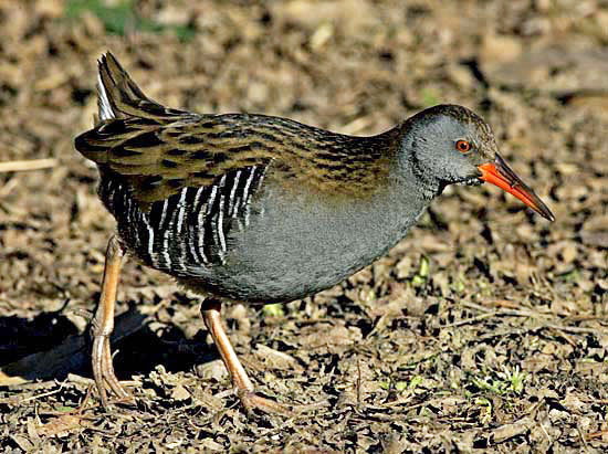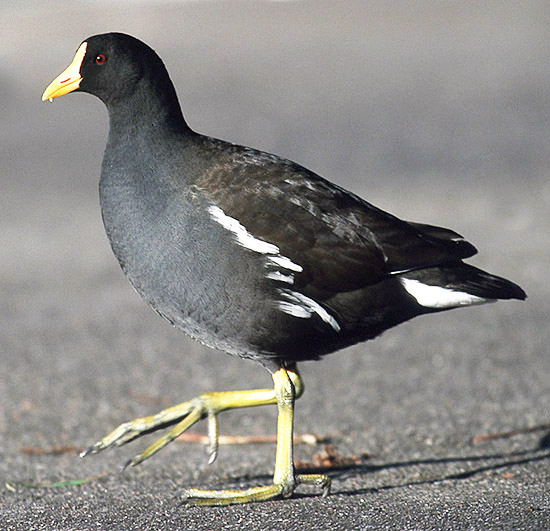 The rail family is fairly large worldwide but we have only five breeding species in the UK - the Coot, the Moorhen, the Water Rail, the Corncrake and the Spotted Crake, two of which are doing well and three less so. Coots (Fulica atra, wingspan 75cm) are principally birds of still waters and extremely pugnacious, including in the winter when we receive thousands of migrants from Northern Europe and punch-ups are regular and ferocious. Despite looking clumsy in the air, migrants can cross the North Sea without too much difficulty. Only one fifth of eggs laid on the nest just above water level result in fledging young - artificial platforms are confidently used on occasions. In the early stages, with their red heads, the chicks look as if they might have been cooked on gas mark 7 for ten minutes. The parents, like Great Spotted Woodpeckers and various other species, divide a brood between them and rigidly feed only 'their' birds. Coots have a love-hate (mostly hate, though That's a human term) relationship with Great Crested Grebes (Podiceps cristatus), engaging in disputes and attempting to seize nests. Moorhens (Gallinula chloropus, wingspan 52cm) are less obvious than Coots and suffer in places from being one of the main prey items of the American Mink (Mustela vison), an unwanted addition to our fauna through carelessness at fur farms and irresponsibility by so-called animal rights activists, many of whom seem to know and care little about the environment whatever they may think about the way humans treat animals in the name of science or fashion. Mink, which are highly intelligent and tremendously effective predators Apart from fish, Otters feed on crustaceans, water birds, frogs and voles. They can use their whiskers as sensing organs underwater, to monitor the movements of prey. The Otters shown on this page are captive at The British Wildlife Centre in Surrey. A few years ago it might have been naive to imagine that Otters would stage a comeback in the Home Counties, but prospects are looking better, thanks to the efforts of conservation groups and the Environment Agency, a tremendous force for good, albeit one that is under-funded. Otters are listed as Vulnerable by the 2000 IUCN Red List. They have become extinct in much of their range, with many populations still diminishing. They are strictly protected by the Wildlife and Countryside Act (1981) and cannot be killed, kept or sold without a licence. Moorhens are commoner on shallow lowland rivers than Coots, but are equally at home on ponds and can reach sizeable numbers if the feeding is good, both from people and in pasture nearby - much of their feeding is done on land. They breed very much as a family, with earlier broods helping in the rearing of later ones. One rarity that turned up at Reigate in Surrey for two winters around the turn of the millennium was a Moorhen without any red on the beak or legs. Most red and orange colours in birds are produced by carotenoid pigments, which are a class of natural fat-soluble pigments found principally in plants, in algae and in photosynthetic bacteria.