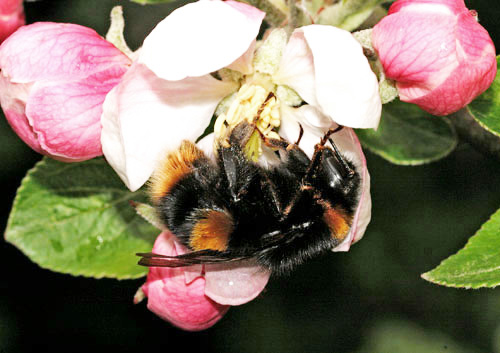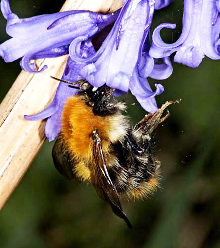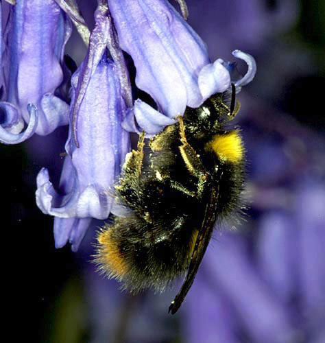 There is an almost infinite variety of woodland and hedgerow flora, with the Bluebell (Hyacinthoides non-scriptus, 20-30cm) perhaps the best known and best loved of the group. Individually they are attractive; in bulk, either in open woodland or on the margins, they are breathtaking, and in some cases eyecatching enough to bring pedestrians, cyclists or even car drivers to a halt. Of course they change the structure of the soil, and can create something of a monoculture, but what a monoculture! Bluebells can spring up in even the most seemingly barren landscape after fire, helped by the amount of sunlight coming through. They require cover from the sun in the summer, be it tree foliage or bracken, as in the open landscape pictured on this page. What they do not need is shading in the spring, and to obtain this, proper woodland management including thinning and coppicing is essential. Unfortunately there possibly is now another issue, since warmer winters and springs may be encouraging trees to come into bud and leaf earlier than suits the Bluebells. Time will tell whether this is going to pose a threat to the species. What is already posing a threat is the Spanish Bluebell (Hyacinthoides hispanica), a tougher plant commonly found in gardens which has colonised quite a lot of woodland, hybridising readily with the native Bluebell. As with so many invasive alien species, controlling the Spanish Bluebell's encroachment is extremely problematical. The appeal of Bluebells to nectaring or pollen-gathering bees and to hoverflies is acknowledged, and bumblebees are among the principal beneficiaries because they are active in the spring. Bumblebees have suffered a major decline since the 1950s, to the extent that half of our native species are in danger. The blame can be ascribed among other things to lack of woodland management and the widespread disappearance of open, semi-natural habitats containing flowers. The more pollen-bearing flowers in the wild or gardens, the better it is for bumblebees. None of the species shown here is in danger. Bombus pratorum (Early Bumblebee, 15mm) is one of the smallest and, as the name suggests, is readily seen in springtime. Nests can be made almost anywhere - underground, in bushes or trees - and are both short-lived and numerically smaller than most, with often fewer than 100 workers. Widespread and common, Bombus terrestris (Buff-tailed Bumblebee, 23mm) can be seen as early as February when the queen may be searching for a nest site. They can still be seen in October. Nests are underground and are large, with more than 300 workers on occasions. The tail varies from dull white to orange via buff. Bombus lapidarius (Red-tailed Bumblebee, 25mm) is very obvious and seen from March to October. The nest, which can have 200 workers, is built in various different locations, usually in open areas. This species is parasitised by the imposing Bombus rupestris (28mm), which differs principally in the wings being much darker. These cuckoo bees need no pollen-gathering equipment because they take over the host's nest by killing the queen and replacing her. This happens in May or June, with a new generation emerging in the summer. Bombus pascuorum (Common Carder Bee, 18mm) is an expanding species nationally and another one seen from March to October. Their nests have around 100 workers. A number of solitary mining bees use Bluebells, but there can be peril on the plant, as the pictured Crab Spider (Misumena vatia, body 8mm), poorly camouflaged for once and awaiting the company of a bee, confirms. Images © Jeremy Early. All rights reserved. In 2013 I published My Side of the Fence - the Natural History of a Surrey Garden. Details may be found, and orders placed, via this hyperlink My Side of the Fence. In November 2015 Surrey Wildlife Trust published the atlas Soldierflies, their allies and Conopidae of Surrey, jointly written by David Baldock and me. Details are on this web page: Atlas. |