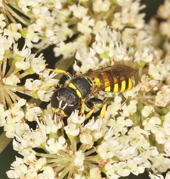 Management techniques in the aftermath of the storm of 1987 were not perfect but as regards dead wood they were better than ten or 15 years earlier, when just about every flattened or damaged deciduous tree would have ended up burned or ground into chippings. The position is improving all the time and nowadays dead wood is becoming quite fashionable - deservedly so, given its importance for around 1,800 species of invertebrates which use the substance, nearly half of them rare or threatened. By the same token, increase the dead wood and you can also help increase the number of birds. There are various ways of creating dead wood to last. Naturally, there are decay and the effects of wind or lightning. Artificially, there is the felling or pruning of a tree followed by allowing the cut wood to lie where it lands. The latter happened with the Beech tree (Fagus sylvatica) featured on this page. Standing at 30 metres and close to a busy road, a house and two public footpaths, By 2009 the wood was shaded out and the wildlife was seriously reduced but the flow had reached a high point between 2005 and 2007 when the most obvious residents were solitary digger wasps from the Crabroninae family. Ectemnius cephalotes, one of ten in the Ectemnius group in the UK, led the way. Ectemnius wasps are pretty common; all prey on Diptera (flies) of various families on which their larvae feed, and all but one nest in rotten wood. Ectemnius cephalotes (15mm), though not social as regards breeding methods, can be social in nesting colonially, as occurred in the Beech, where they were visible from June to early October. There was one main entrance with anything up to eight females using it, who bore lateral tunnels with separate cells capable of containing up to a dozen prey items apiece. The borings below the entrance were testimony to the size of the colony. The males, as usual, are smaller and play no part in breeding once mating has occurred. The females caught prey some distance from the beech, and generally flew straight into the nest at speed with it, an action requiring perfect judgement and one that presents a remarkable sight to an observer, albeit not quite so stunning as another digger wasp, Cerceris rybyensis, flying into its sandy burrow with mining bees. Sometimes the Ectemnius cephalotes settled, especially if another was exiting Two other species of Ectemnius were seen using the beech - Ectemnius continuus (12mm) and Ectemnius lituratus (13mm), though the latter was in a different section of trunk. Both also burrow out multi-celled nests but catch slightly smaller prey than Ectemnius cephalotes. Other species using the trunk for one reason or another in this period - unfortunately the nesting area was dug out by kids in 2008 - included the nesting wasps Crossocerus podagricus and Stigmus pendulus, the lovely Small Magpie Moth (Eurrhypara hortulata, wingspan 35mm), which bred on nearby nettles, and the large Ichneumon wasp Dolichomitus imperator (35mm), which is shown using its long, needle-sharp ovipositor to probe for weevil larvae in which to lay eggs. A scarce fly, formerly RDB2 but seemingly increasing in numbers, was very evident on the surface in 2006. This was Paraclusia tigrina (7mm), a fly with red-brown the predominant colouring whose larvae are believed to develop in moist rotten wood, particularly Beech. The log offered a perfect habitat. To give an additional indication of the variety of species associated with dead wood, two invertebrates photographed within 50 metres of the log have a link with this habitat. The impressive and nationally scarce hoverfly Criorhina ranunculi (14mm) is a bumblebee mimic whose larvae have been found in Beech roots and in rotting wood from Beech and Birch (Betula spp). The pictured Tumbling Flower Beetle (Mordellidae sp, 10mm) has a distinct pointed abdomen often found in the genus. Many of the larvae develop in dead or dying deciduous wood. The adults are decidedly lively and take their name from the fact that they tend to somersault off flowers in the blink of an eye if approached. Similarly, logs and pieces of wood or bark of all sizes left lying on the forest floor afford perfect shelter for creatures which do not want brighter or drier conditions, including Woodlice, Centipedes and The former are crustaceans, the latter two arthropods which emerge into the open at night and hunt smaller invertebrates. They have no eyes, relying on touch and vibration to identify prey, which is killed by poison injected through the front legs modified as fangs. The commonest centipede, found under a piece of wood from the beech, is Lithobius fortificatus (30mm), a fairly chunky species. On dead wood (Oak) not far a way in 2009 I found a remarkably rare fly, Rainieria calceata (12mm), which is a Red Data Book 1 species found at fewer than ten places in Britain including Windsor Great Park and Burnham Beeches. They have been discovered in a couple of other places in Surrey in recent years so maybe they are not quite so endangered as their status suggests. The species is one of the co-called Stilt-legged Flies, all of which have long legs. The larvae feed on decaying matter and adults are found in woodlands. One noted piece of behaviour is lifting the usually well-marked forelegs into the air. The reason for this may be connected to imitating aculeate antennae and deterring predators but that's far from certain. Images © Jeremy Early. All rights reserved. In 2013 I published My Side of the Fence - the Natural History of a Surrey Garden. Details may be found, and orders placed, via this hyperlink My Side of the Fence. In November 2015 Surrey Wildlife Trust published the atlas Soldierflies, their allies and Conopidae of Surrey, jointly written by David Baldock and me. Details are on this web page: Atlas. |