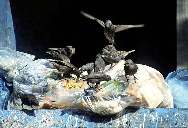 Mistletoe (Viscum album) has never been so common in the south-east as in the west midlands but it seems to be enjoying a resurgence, perhaps because unlike holly, which throws out few berries after a hot summer, mistletoe thrives in sweltering conditions. One of a handful of native British evergreens, it is a partial parasite growing on trees with soft bark, which means it makes some of its own food but takes most of its sustenance from the host tree. These are usually Apple (Malus domestica), Lime (Tilia sp), Hawthorn (Crataegus monogyna), Poplar (Populus sp) or Field Maple (Acer campestre). The plant's white, seed-bearing berries are popular with the thrush family in general and the Mistle Thrush (Turdus viscivorus, wingspan 45cm) in particular. But they are very sticky and the birds can end up cleaning their beaks on bark, thus giving the plant the chance to develop. Mistle Thrushes are fairly common and hold sizeable territories, larger than those of the Song Thrush which is smaller and less strikingly marked. Mistle Thrushes feed their young on protein-rich invertebrates and go for berries in autumn and winter. The pictured Mistletoe is on a single apple tree, and following the apple link a little further, orchards, which are close to being a semi-natural environment in the amount of wildlife they encourage, have been grubbed up all over the place in the last 40 years, with roughly half disappearing. One of the most obvious reasons for this is that despite increasing public interest in buying organic crops and local produce from farmers' markets, the demand is still insufficient to make the old methods viable. Put simply, orchards are not cost effective in an era where supermarkets claim that their shoppers require apples of an even size, weight and surface. In truth, supermarket chains influence taste rather than responding to it, with the result that flavour can go to blazes with apples, as with much in the way of the fruit and vegetables these behemoths sell. If anything, the EU, and as a result major supermarkets, used to encourage intensive agriculture by their determination to obtain uniformity. That policy was reversed in 2009 but still seems to hold good (or bad) judged on the food filling the shelves in stores. Moreover, intensive agriculture, with its reliance on relentless spraying with pesticides and fertilisers, helps to kill taste and goodness by destroying many beneficial organisms in the soil. Food which does not fit a pre-ordained shape tends to be ploughed back into the ground, an appalling waste and another indication that the dominance of supermarkets represents the economics of the madhouse vis a vis farmers. It must be lunacy when customers pay little more for products than they cost to grow. Supermarkets - and the general public - are also ludicrously wasteful of resources in terms of dumping unsold or uneaten food. With the amount of food waste rising by anything up to 15 per cent a decade according to research done by John Vidal of The Guardian and BBC Radio 4's Costing the Earth, the future may well be progressively less sustainable than the present, though some helpful developments have occurred, including unsold food being used to provide A few years ago the East London Community Recycling Partnership calculated that each person in Britain throws out 2.7kg of food each week. However, composting and recycling on a wider scale are gaining in popularity with individuals, local authorities and commercial operators, which is all to the good. Some of the waste is not our fault either. Who hasn't bought milk that goes off before the use-by date, or fruit that wrinkles or goes rotten without warning well before it ripens? Maybe one day the date harvested, rather just the sell-by date, will have to be marked on produce by law. Then we may really know the score. The frightening 'chuck-out' figure above would lessen a little if large retailers paid a little more attention to the reduced requirements of the growing number of individual family units - now around 7 million in the UK - rather than assuming when packaging food that everyone is part of a social group of two or more. Occasionally, as with the family of Starlings in the picture, food waste can be used by wildlife but that is just an unintentional aberration. Moreover, scavenging on landfill sites is of questionable assistance in the long-term since it can create an unnatural imbalance artificially favouring some species over others. As it happens, Starlings (Sturnus vulgaris, wingspan 40cm) have suffered a major decline as breeding birds in Europe including Britain in the last 25 years and are now a species of high conservation concern. Their fall in numbers - in winter millions come here - is a shade surprising given their adaptability in feeding and nesting. Images © Jeremy Early. All rights reserved. In 2013 I published My Side of the Fence - the Natural History of a Surrey Garden. Details may be found, and orders placed, via this hyperlink My Side of the Fence. In November 2015 Surrey Wildlife Trust published the atlas Soldierflies, their allies and Conopidae of Surrey, jointly written by David Baldock and me. Details are on this web page: Atlas. |