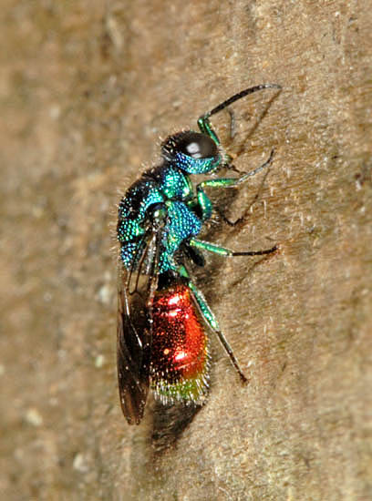 The original wasp had been stocking her nest in a cut, dead stem on a bramble for at least a day. The usurper entered the stem without prey and was inside for ten minutes before the 'owner' of the nest arrived carrying a spider. Soon after the latter went in, there was a commotion and the females emerged locked in combat, shown in the accompanying image. They fell to the ground and continued struggling but within 30 seconds one flew off. There was no way of knowing whether she was the original occupier or the interloper. This is known as intraspecific or conspecific parasitism. Such behaviour between different species is also pretty common; an example is shown in the gardens section here with Ectemnius continuus usurping a Pemphredon lugubris. Gymnomerus laevipes (12mm), which builds up to 12 cells separated by clay partitions in plant stems including bramble and thistles, is one of the Potter/Mason wasps (eumenids) and has suffered a decline. They are seen from May to July and prey on weevil larvae. Another eumenid, Ancistrocerus gazella (12mm), is on the wing from June to August catching Lepidoptera larva to stock its nest in a cavity in a plant, normally a stem. Brambles are particularly popular but the wasps can utilise elder, holes in masonry or straw in a thatched roof, so they are not too hard to please. Cells and the completed nest are closed with soil which includes sand . Ancistrocerus parietinus (12mm) has a similar profile. From the same family are three Symmorphus species. Symmorphus gracilis (11mm) and Symmorphus bifasciatus (11mm) are slender and fairly common and seen from May to August. Though seemingly suited by damp places, often near ditches and streams, these wasps nest in a variety of locations, including cavities in walls, plant stems and disused plant galls in which they place beetle larvae for their offspring to feed on. The pictured females on heathland were forced to use sand bound with saliva for the partitions in their nests, not the most amenable substance. Much rarer, a Red Data Book species, is Symmorphus crassicornis (12mm) but this wasp is in fact rather commoner than was believed a few decades ago. This is because its association with its only prey, the larvae of the handsome Poplar Leaf Beetle Chrysomela populi based on Aspen trees, was not fully appreciated until 1980 or so. Wherever the beetle has been found in Surrey, and to a lesser extent in other counties in the south, the wasp has been found too. This is essentially heathland but the involvement of trees justifies the inclusion of the species here. Symmorphus crassicornis is seen in July and August flying fast in the vicinity of The smallest Eumenid is a fairly recent arrival in Britain. Called Microdynerus exilis, it is only 8mm and was first spotted in 1937. Unlike the rest of the family, the markings are more ivory than yellow. The range has expanded and although still officially scarce, the species is always worth looking for in the south in dead standing wood, an exceptional habitat. The eight species of ruby-tailed wasps covered by the title Chrysis ignita (average 9mm) cleptoparasitise a wide variety of species dominated by Ancistrocerus. These are the largest of the genus, with the pictured female measuring 11mm. Pseudomalus auratus (6mm), a chunky species which parasitises Pemphredon and Passaloecus wasps among others, is fairly common but Chrysis gracillima (6mm) is much rarer. A Red Data Book species, this one is relatively elongated compared with most other Chrysid wasps, enabling access to small holes in wood where prey, possibly including Trypoxylon clavicerum (mentioned above) nests. Three wasps that parasitise bees, Chrysura radians, Monosapyga clavicornis and Sapyga quinquepunctata, are shown on the Bee Parasites page in this section. Images © Jeremy Early. All rights reserved. In 2013 I published My Side of the Fence - the Natural History of a Surrey Garden. Details may be found, and orders placed, via this hyperlink My Side of the Fence. In November 2015 Surrey Wildlife Trust published the atlas Soldierflies, their allies and Conopidae of Surrey, jointly written by David Baldock and me. Details are on this web page: Atlas. |