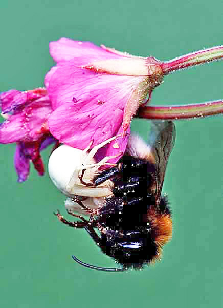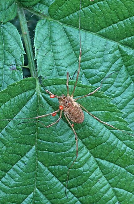 The episode focusing on Arachnidae (spiders) in Life in the Undergrowth on BBC was one of the best in the series and with luck it might have persuaded a few people that these invertebrates are to be admired rather than feared. A boss in industry would surely relish an employee with the qualities spiders show - they are determined, effective, decisive, productive and not wasteful. Spiders in woodland and hedgerow would provide a lifetime's study, so those The Orb-web spider Tetragnatha extensa (body 12mm), from the Tetragnathidae family, builds an inclined web with few radii and spirals in damp places. Marpissa muscosa (10mm), from the Salticidae family, is a nationally scarce jumping spider, larger than most of that group and found under bark or in crevices in trees or fence posts. A female is shown in the Gardens section of the website. Pisaura mirabilis (15mm) is a sizeable member of the Pisauridae family and commonly called a wolf spider, using speed and mobility on the ground rather than a web to chase and catch prey. They bask in sunshine regularly. Uniquely, males present a courtship gift to females, who carry eggs in a sac underneath until they hatch. As the picture above shows, this is quite a commitment, but the females can move almost as fast with the encumbrance as without, and the fact that spiders do not need to hunt every day helps. This behaviour is also shown with a Pardosa lugubris female (6mm), from the Lycosidae family. After hatching, the spiderlings are carried on the back. There are getting on for 20 Pardosa species in the UK, a number of which are hard to tell apart. The Agelenidae/Hahniidae family is small and there only two of the Agelenidae Misumena vatia (10mm) is probably the best known and most often seen member of the Thomisidae family, the so-called Crab Spiders. Females habitually skulk on plants, mostly white like Ox-eye Daisy (Leucanthemum vulgare) but also yellow or green, awaiting prey. They can change colour to match the plant in as little as two days - the second image shows the yellow form - and are capable of using their pincer-like front legs to catch and eat large Hymenoptera such as bumblebees. On occasions, though, as in the third picture of the species above stalking a male Osmia rufa, they lack the size to complete the circle in the pincer movement and fail. The bee showed no sign of concern after the failed attack and carried on nectaring on the plant. The Cross or Garden Spider (Araneus diadematus, 12mm) is the most often seen member of the Araneidae family, with its often perfectly circular and beautifully constructed webs seeming to fill almost any habitat when you walk towards the sun on a dewy morning. The webs can be 40cm in diameter and are found at up to 2.5 metres Harvestmen are related to spiders and with around 3,500 species worldwide are hardly a small group. Most in the UK are easily distinguished by having long legs as well as the standard design of a single body unit with a turret (ocularium) above this for the eyes. They lack poison, or silk to construct a trap, but are fast and capable of catching small prey. Equally, they scavenge on almost anything, including bird droppings and even, according to Dick Jones in his excellent out-of-print book on spiders published by Country Life, marmalade. Harvestmen are prone to infestation by mites, as the image shows. Certain woodland and hedgerow spiders can fall prey to one of the minority of spider-hunting wasps found in this environment more often than heathland, namely Priocnemis perturbator (14mm). This species is one of a handful, all of them relatively large and also including Priocnemis susterai and Anoplius viaticus, which overwinter as adults and appear in the spring. Priocnemis perturbator, which is reasonably common and has long antennae, can often be seen nectaring on Wood Spurge (Euphorbia amygladoides). Priocnemis perturbator follows the method of the majority of spider-hunting wasps in hunting out prey, which is paralysed then transported to a burrow where the spider has an egg laid on the abdomen and is interred to provide sustenance for the resulting larva. Arachnospila spissa (to 12mm), which also inhabits mainly vegetated areas, is one of the largest spider-hunting wasps. Not too difficult to find on the margins of woodland, they have a different approach to the same end of finding food for their offspring, attacking prey in the nest and leaving it there paralysed. Images © Jeremy Early. All rights reserved. In 2013 I published My Side of the Fence - the Natural History of a Surrey Garden. Details may be found, and orders placed, via this hyperlink My Side of the Fence. In November 2015 Surrey Wildlife Trust published the atlas Soldierflies, their allies and Conopidae of Surrey, jointly written by David Baldock and me. Details are on this web page: Atlas. |